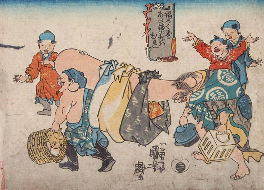 而這次,我們就要來看看歌川國芳以福祿壽為中心所繪製的戲畫,好大膽的國芳啊,居然連神明也敢開玩笑?