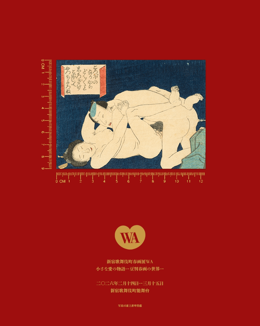 「《一段小小的愛之物語》豆判春畫的世界|迷你浮世繪春畫」 將於 2026年2月14日(週六)至3月15日(週日)盛大舉行。這不僅是世界首次僅以「豆判春畫 」為主題的展覽,更是一場融合江戶美學與現代繁華街區文化的跨時空對話。